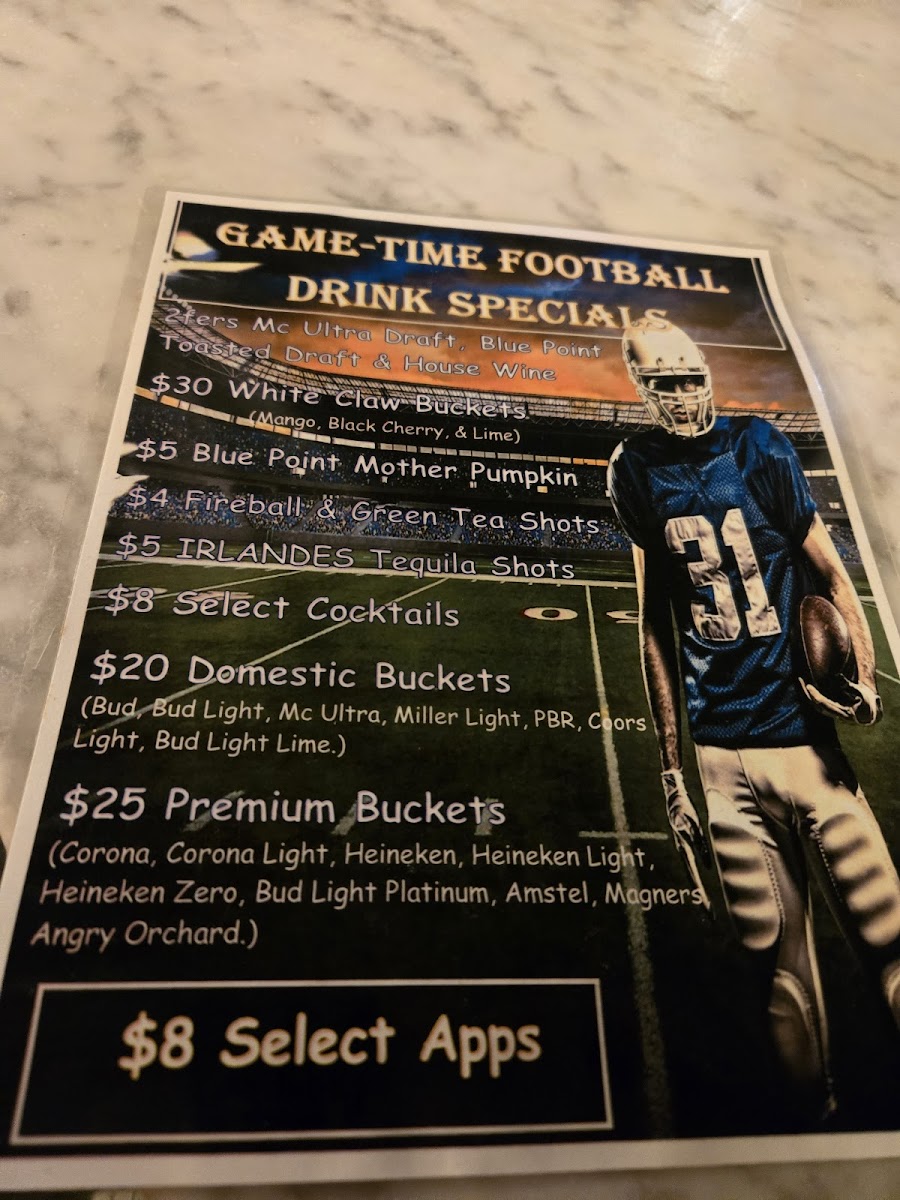 Paddy’s, Blueberry Vodka, Muddled Lemon & Blueberries, Simple Syrup, Club Soda and a Splash of Blue Curaçao